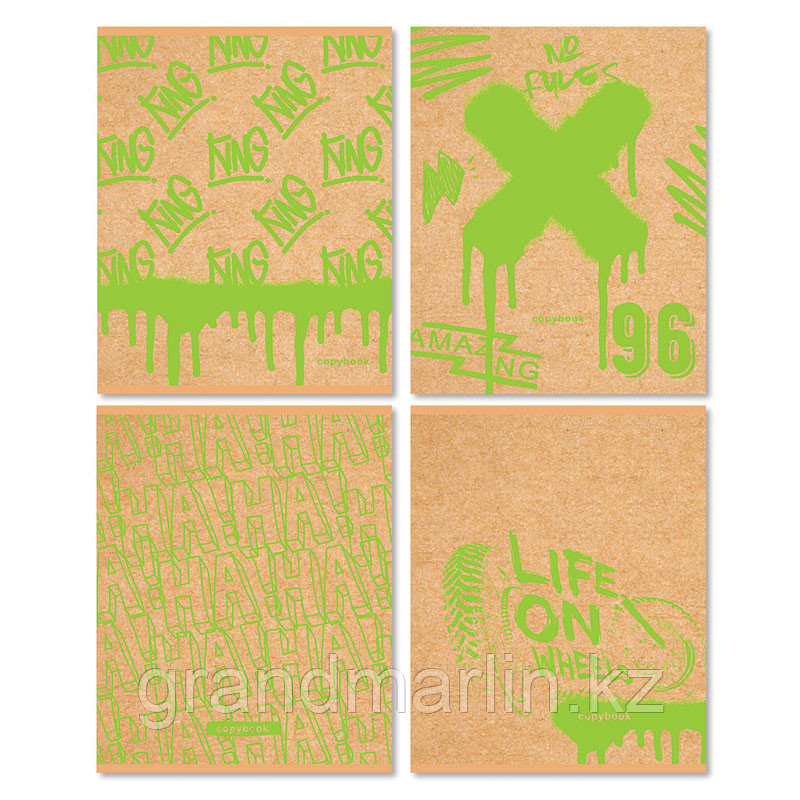 Тетрадь BG серии «Нет правил» в клетку. Формат А5. Вид крепления – скрепка. Внутренний блок – это 96 листов, офсетная бумага плотностью 60 г/м². Обложка выполнена из крафтового картона с печатью неоновой краской. Тетради с креативным дизайном отлично подходят для выполнения домашних и классных работ.