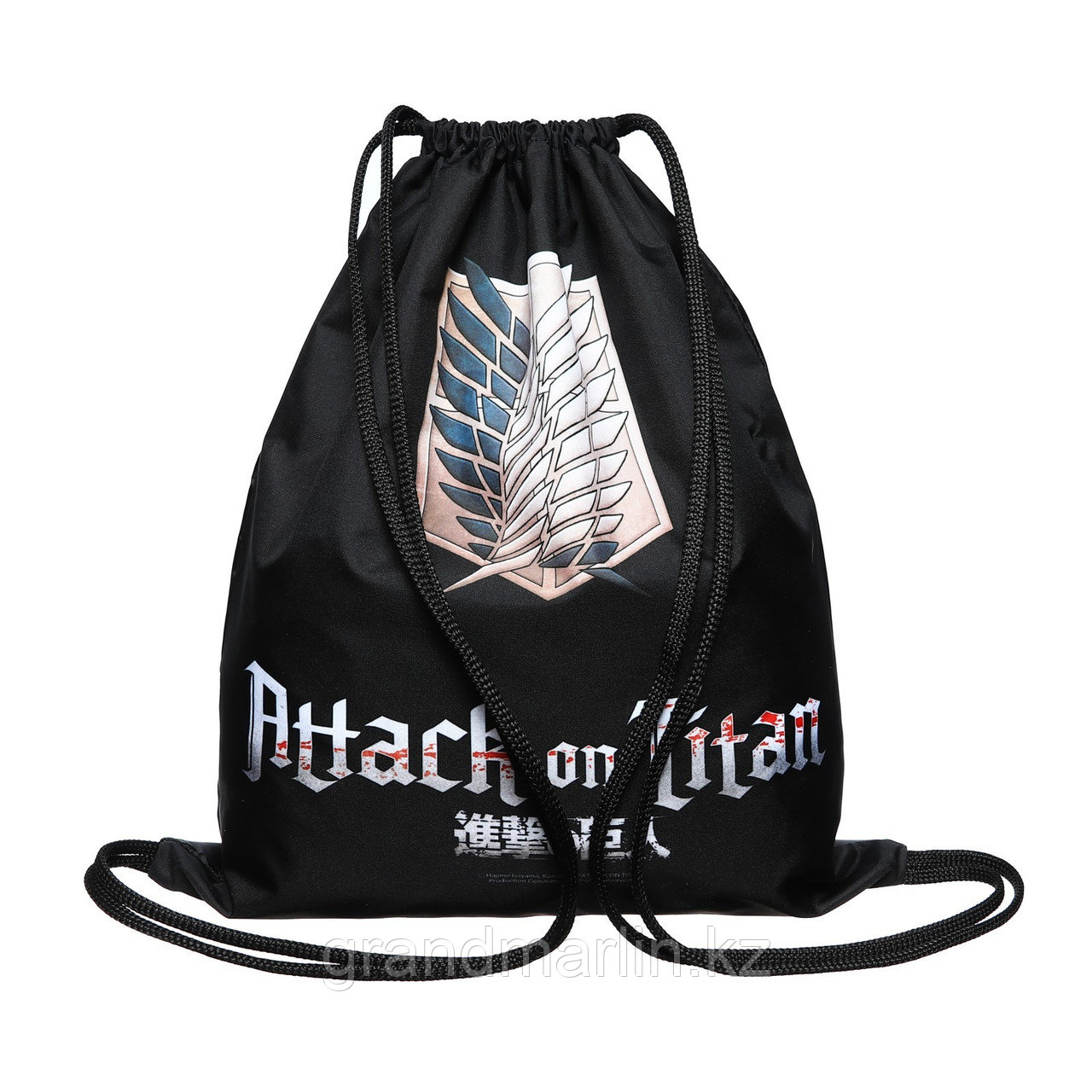 Мешок для обуви 490 х 410 мм, с петлей, Hatber "Атака Титанов" чёрный NMn_14079