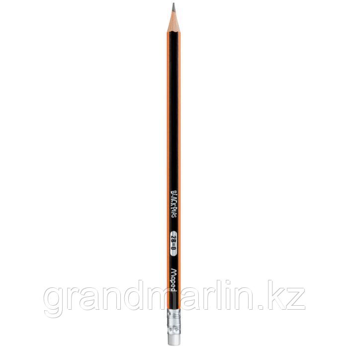 Карандаш чернографитный Maped Black Peps 2В, деревянный, с ластиком, ударопрочный грифель