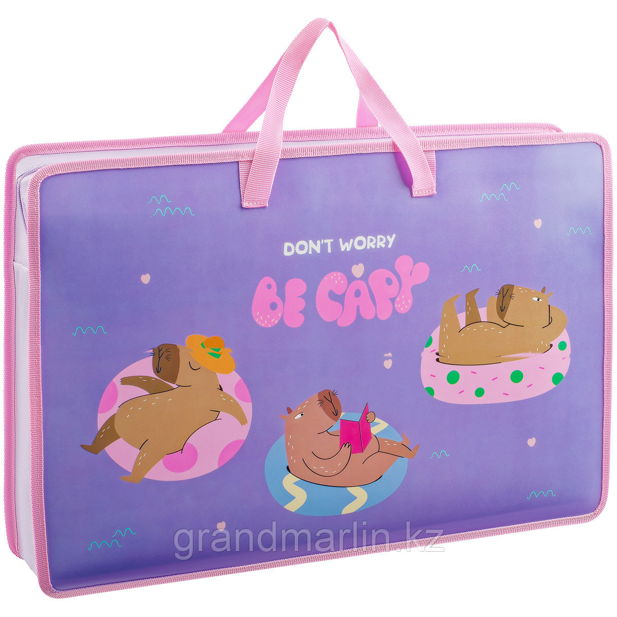 Папка на молнии ArtSpace "Capybara" формата А3 помогает сохранить аккуратный вид рисунков и чертежей. Благодаря ручкам её может брать с собой на дополнительные занятия, в школу, колледж или вуз. Изделие имеет одно отделение.